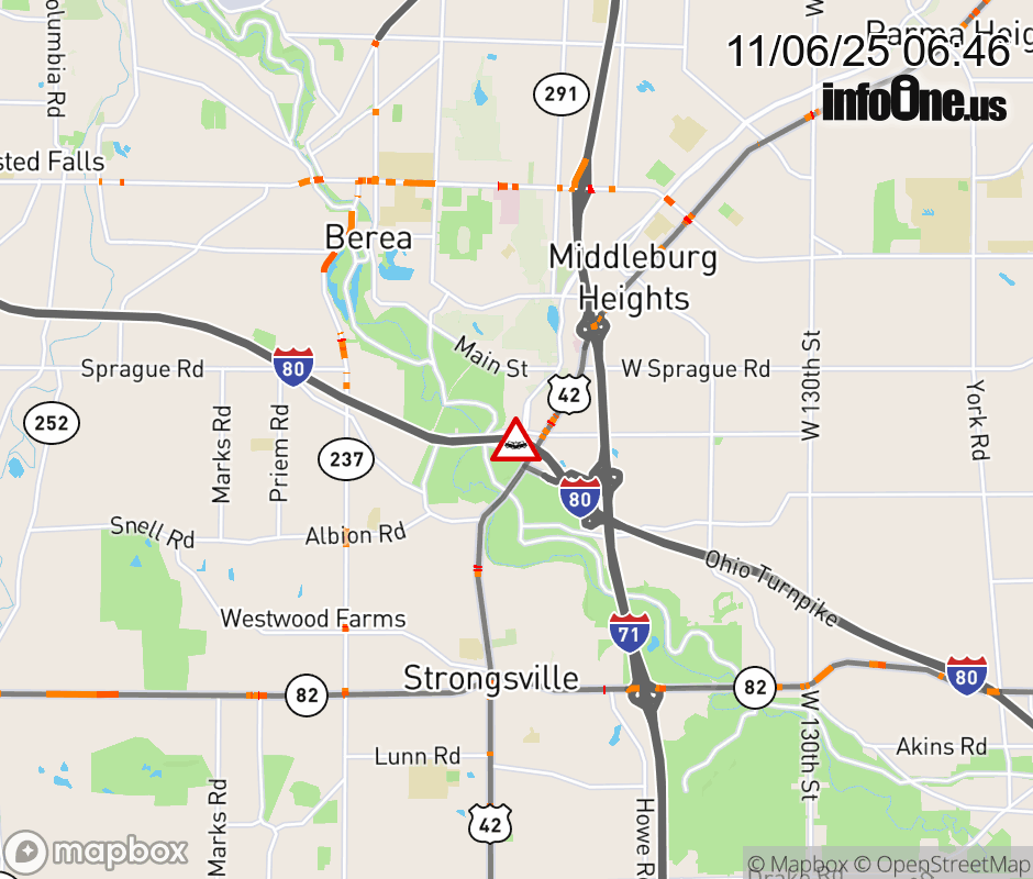 Expect lane closures on I-80 West (Ohio Turnpike) beyond I-71, due to a crash. ![]() |