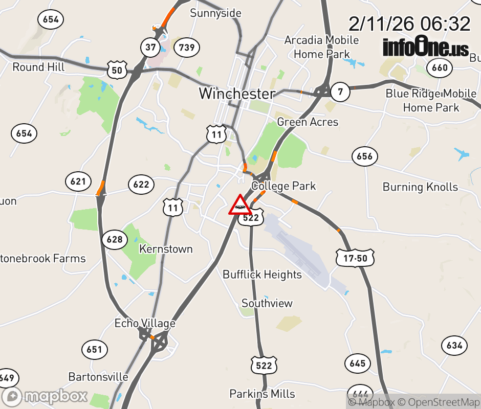 On I-81 at mile marker 313 in the County of Frederick, motorists can expect delays due to a vehicle crash. The south exit 313 narrows. Updated: Wed 2/11/26 6:32 AM EST ![]() Updated: Wed 2/11/26 6:32 AM EST |