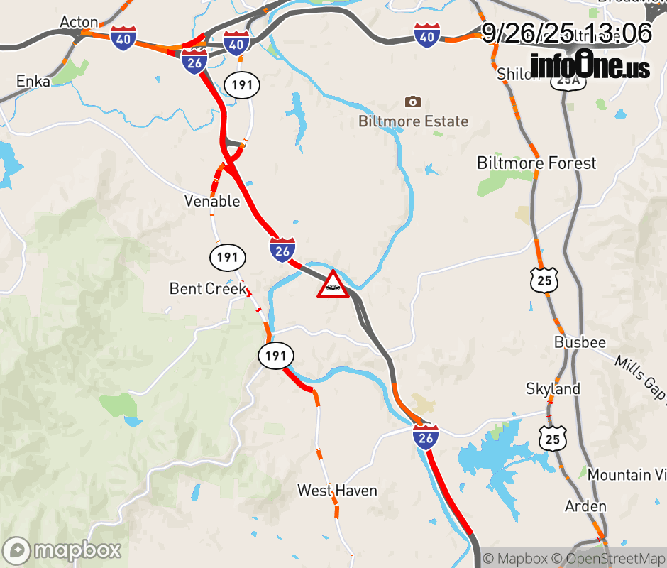 The right shoulder is closed 2 miles East of Exit 33 (NC 191/Brevard Road) due to a vehicle crash. Updated: Fri 9/26/25 1:06 PM EDT ![]() Updated: Fri 9/26/25 1:06 PM EDT |