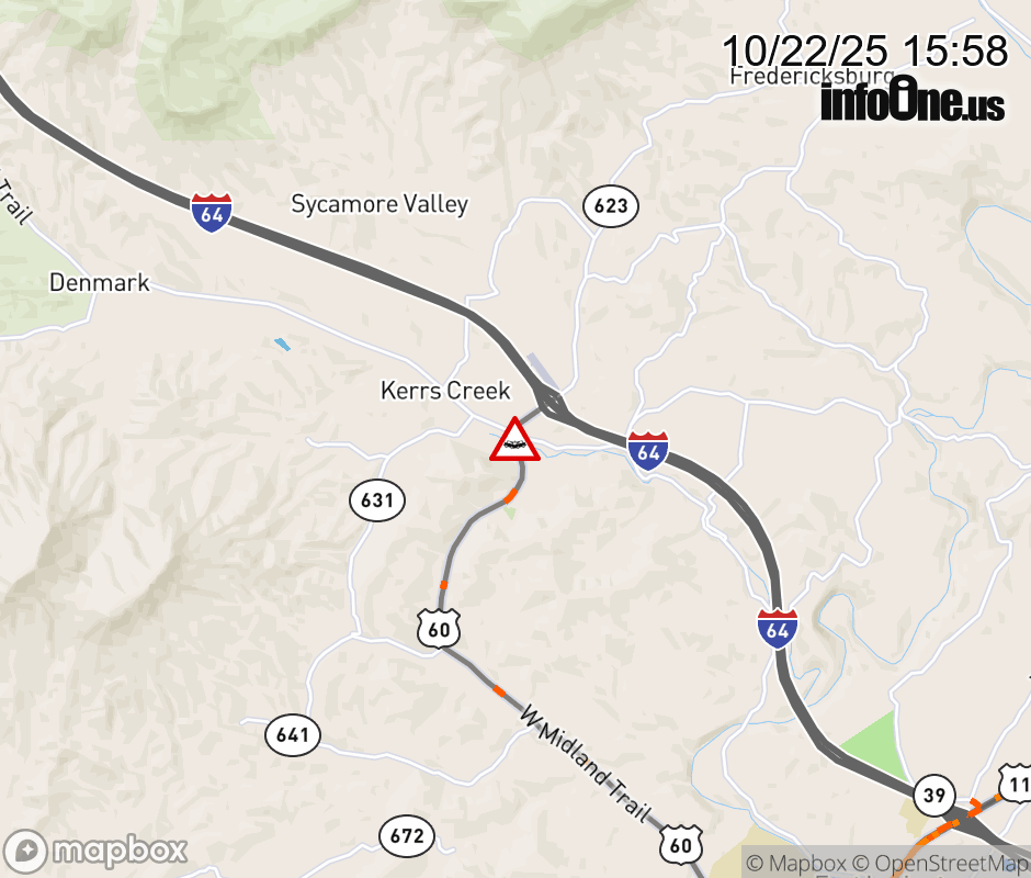 On US-60 East in the County of Rockbridge, in the vicinity of Big Spring Dr; Rt. 631E/W (Rockbridge County);BIG SPRING DR, motorists can expect delays due to a vehicle crash. Updated: Wed 10/22/25 3:58 PM EDT ![]() Updated: Wed 10/22/25 3:58 PM EDT |