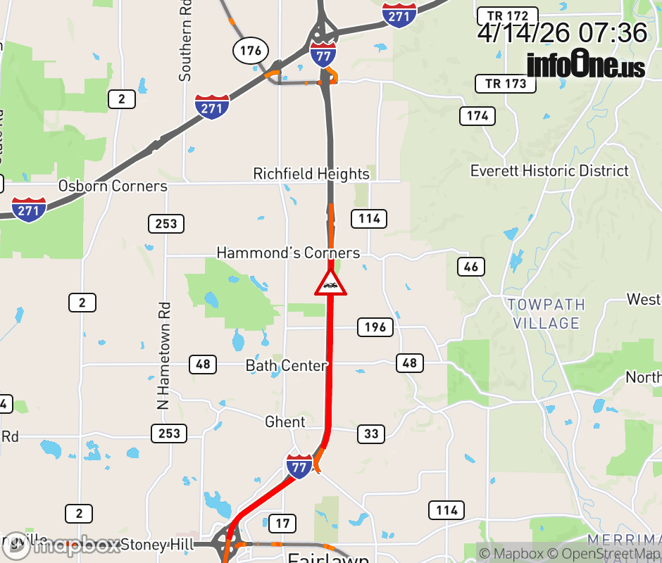 The left lane is blocked on I-77 North beyond Ghent Rd, due to a disabled vehicle. ![]() |