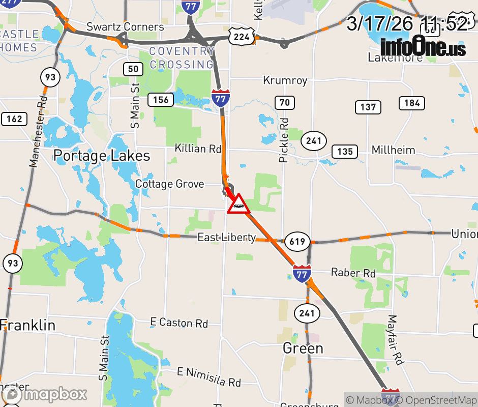 All lanes are closed on I-77 North at Arlington Rd, due to a crash. ![]() |