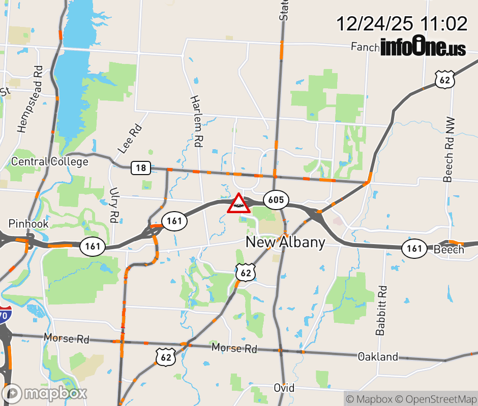 The right shoulder is blocked on SR-161 East beyond New Albany Rd, due to a crash. Updated: Wed 12/24/25 11:02 AM EST ![]() Updated: Wed 12/24/25 11:02 AM EST |