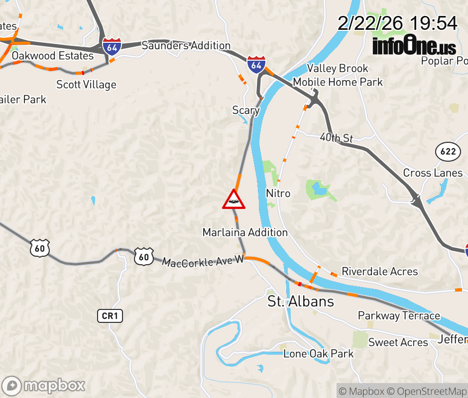 Vehicle Crash on WV-817 (WINFIELD RD/Tompkins Crossing Rd). The southbound road is closed. Updated: Sun 2/22/26 7:54 PM EST ![]() Updated: Sun 2/22/26 7:54 PM EST |
