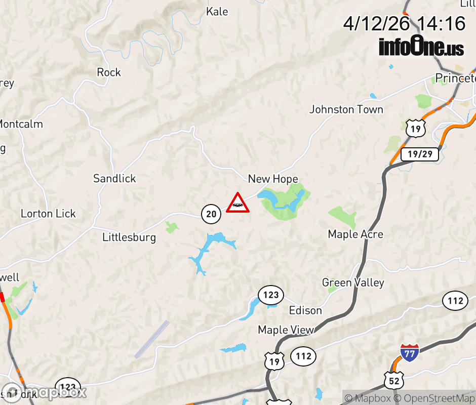 Vehicle Crash on WV-20 (1413 New Hope Rd) . ![]() |