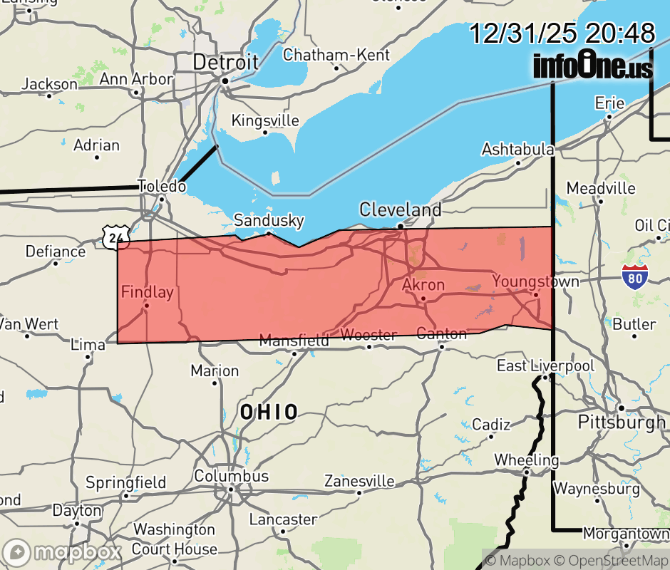 Canceled 12/31/25 10:15 PM Special Weather Statement issued December 31 at 8:47PM EST by NWS Cleveland OH At 847 PM EST, radar indicated snow showers along a line extending from near Lakewood to near Bowling Green, moving south at 15 mph. HAZARDS INCLUDE... Winds to 30 mph... Visibility dropping to less than three quarters of a mile... Up to 2 inches of quick snow accumulation... Locations impacted include... Cleveland, Akron, Youngstown, Lorain, Elyria, Warren, Findlay, Bowling Green, Medina, Sandusky, Ashland, Tiffin, Norwalk, Fremont, Fostoria, Ravenna, Western Vermilion, Vermilion, Upper Sandusky, and Bluffton. Use extra caution if you must travel. Rapid changes in visibility and potentially slick roads may lead to accidents. ![]() |
