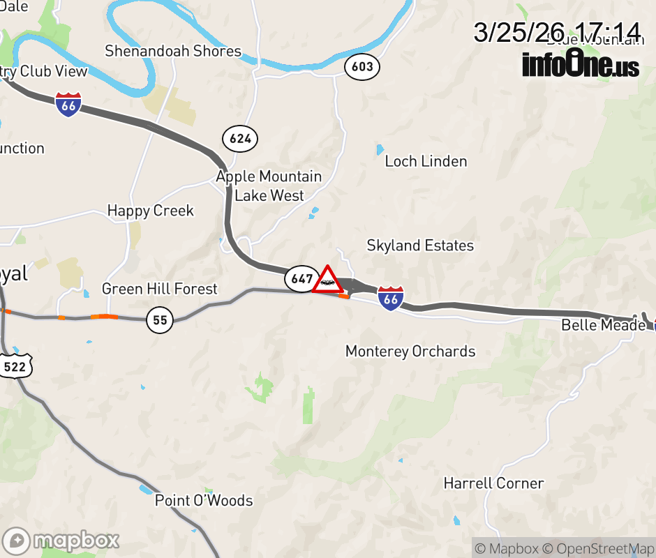 On I-66 at mile marker 13 in the County of Warren, motorists can expect delays due to a vehicle crash. The west exit ramp narrows. ![]() |