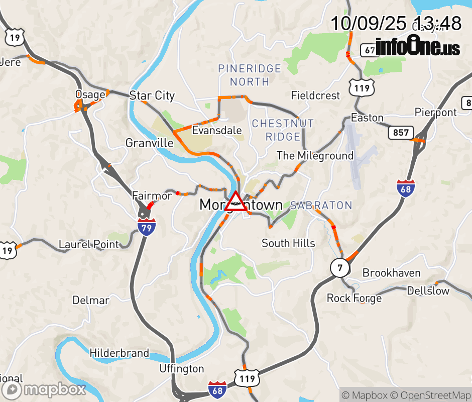 Vehicle Crash on US-19 (University Ave) & Walnut St in Morgantown. ![]() |