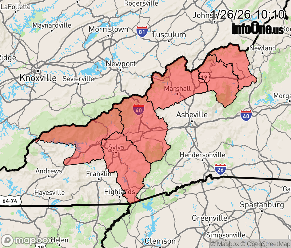 Canceled 1/26/26 6:10 PM Extreme Cold Warning issued January 26 at 10:09AM EST until January 27 at 12:00PM EST by NWS Greenville-Spartanburg SC * WHAT... For the Cold Weather Advisory, very cold wind chills as low as 10 below expected. For the Extreme Cold Warning above 3500 feet, dangerously cold wind chills as low as 18 below expected. * WHERE... Haywood, Madison, Mitchell, Northern Jackson, Swain, and Yancey Counties. * WHEN... From 6 PM this evening to noon EST Tuesday. * IMPACTS... The dangerously cold wind chills as low as 19 below zero could cause frostbite on exposed skin in as little as 30 minutes. An extended period of freezing temperatures could cause ruptured water pipes. ![]() |