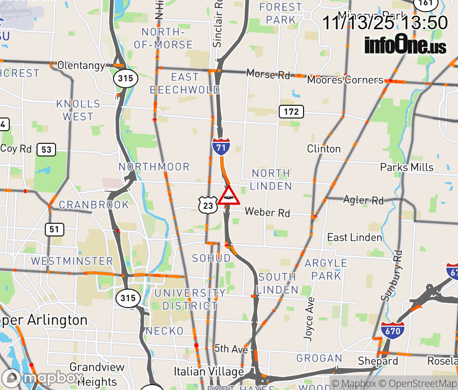 The right shoulder is blocked on I-71 North at North Broadway, due to a crash. Updated: Thu 11/13/25 1:50 PM EST ![]() Updated: Thu 11/13/25 1:50 PM EST |