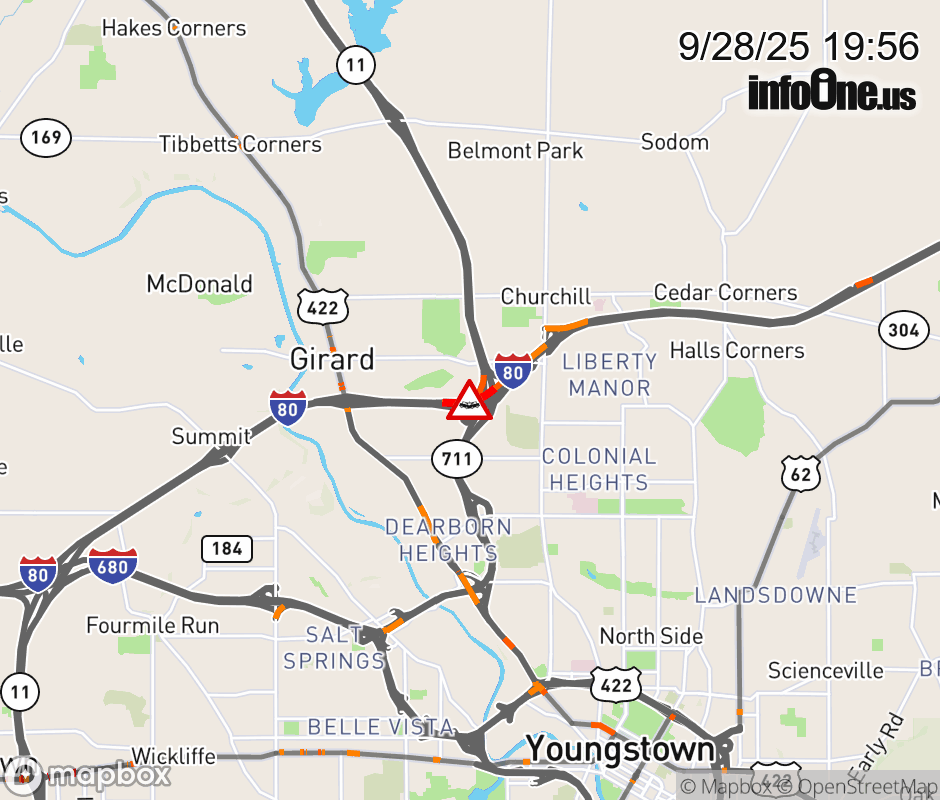 Canceled 9/28/25 8:22 PM Location: Ramp SR-711 South to I-80 West S, OH Accident.