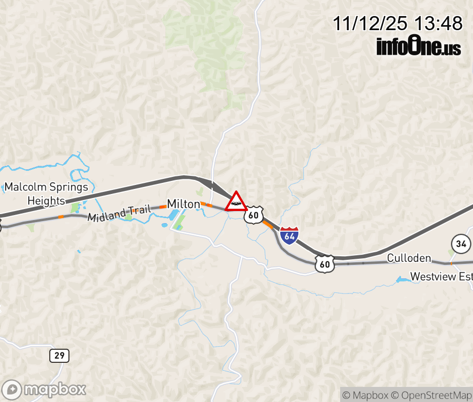 Vehicle Crash on I-64W at Mile Marker 28.0. The westbound left lane is closed. ![]() |