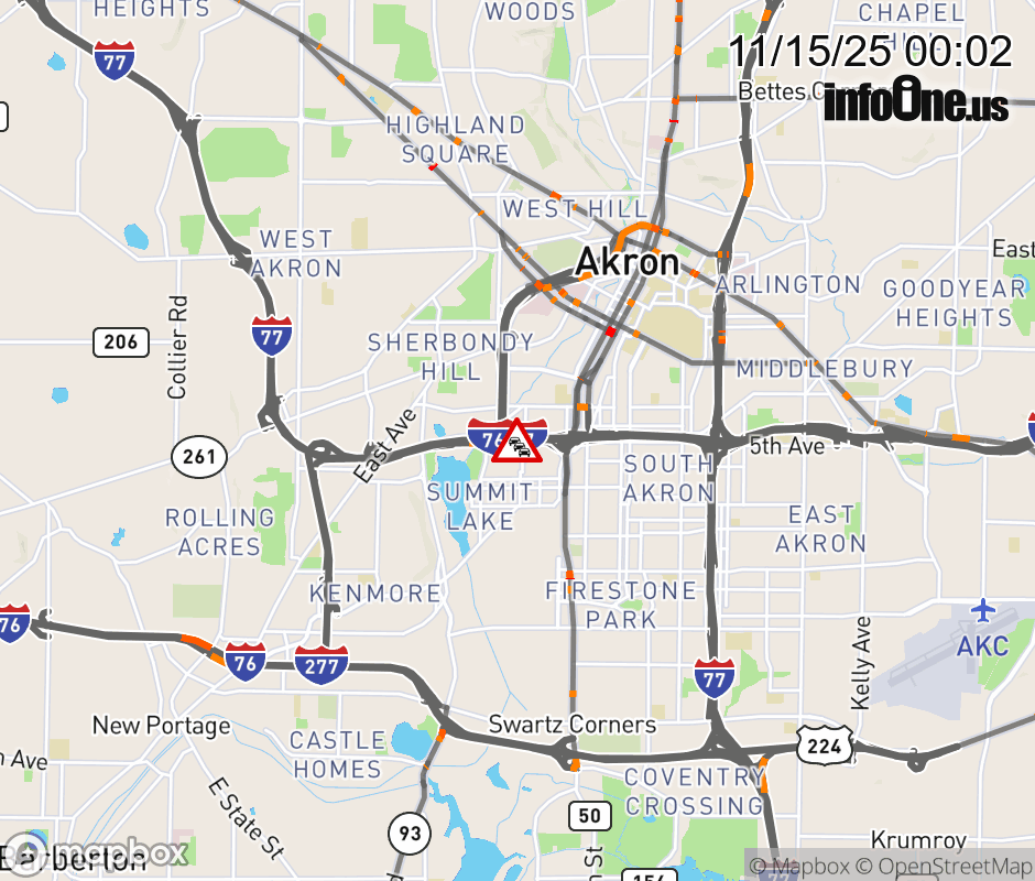The left lane is blocked on I-76 East/I-77 South beyond SR-59/Downtown, due to repairs/maintenance. ![]() |