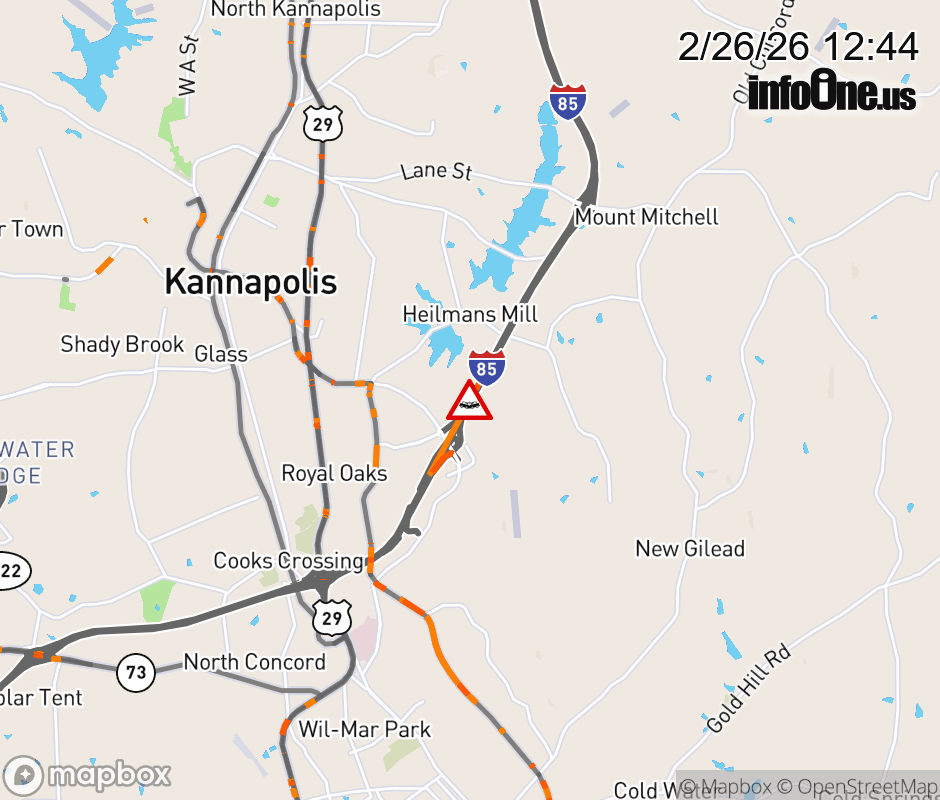 The two left lane are closed at Exit 60 (Dale Earnhardt Blvd.). Updated: Thu 2/26/26 12:44 PM EST ![]() Updated: Thu 2/26/26 12:44 PM EST |