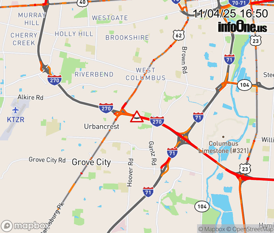 The right lane is closed on I-270 West beyond I-71, due to a crash. Updated: Tue 11/4/25 4:50 PM EST ![]() Updated: Tue 11/4/25 4:50 PM EST |