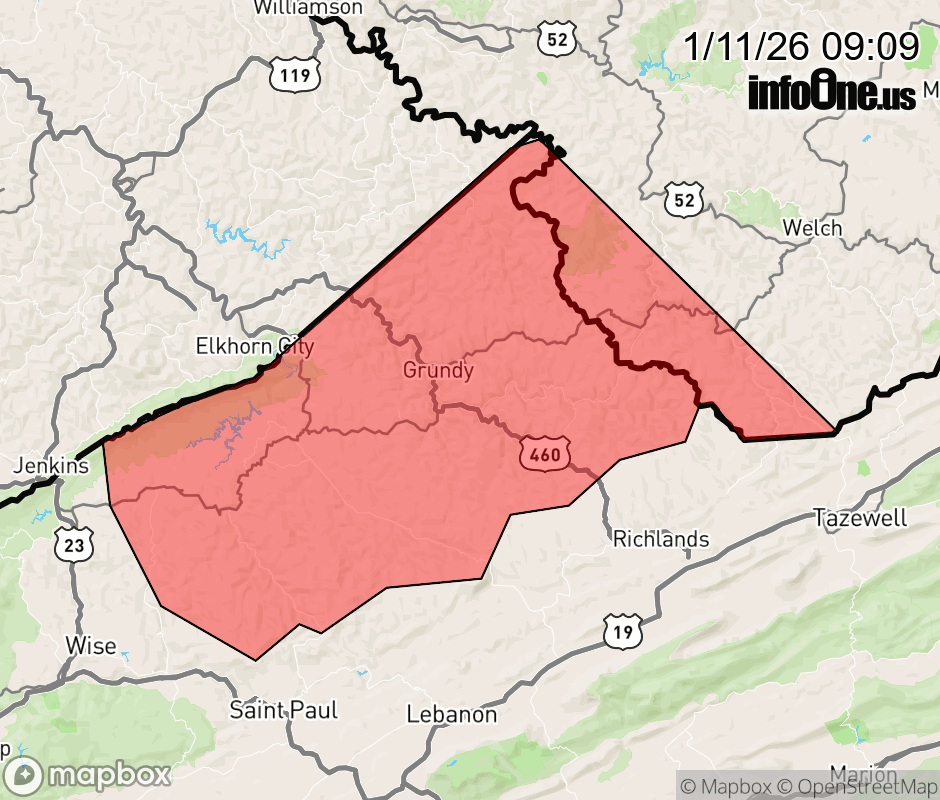 Canceled 1/11/26 10:30 AM Special Weather Statement issued January 11 at 9:08AM EST by NWS Charleston WV At 907 AM EST, a snow squall was located along a line extending from 10 miles southeast of Argo to Ehkhorn Mine. Movement was southeast at 15 mph. Winds in excess of 30 mph, and reduced visibilities are possible with this squall. Locations impacted include... Clintwood, Grundy, Haysi, Breaks Interstate, Davenport, John Flannagan Lake, War, Big Rock, Trammel, Paw Paw, Clinchco, Bradshaw, Jolo, Oakwood, Stacy, Nora, Vansant, Hurley, McClure, and Roseann. Use extra caution if you must travel into or through this dangerous snow squall. Rapid changes in visibility and potentially slick roads are likely to lead to accidents. Consider delaying travel until the squall passes your location. ![]() |