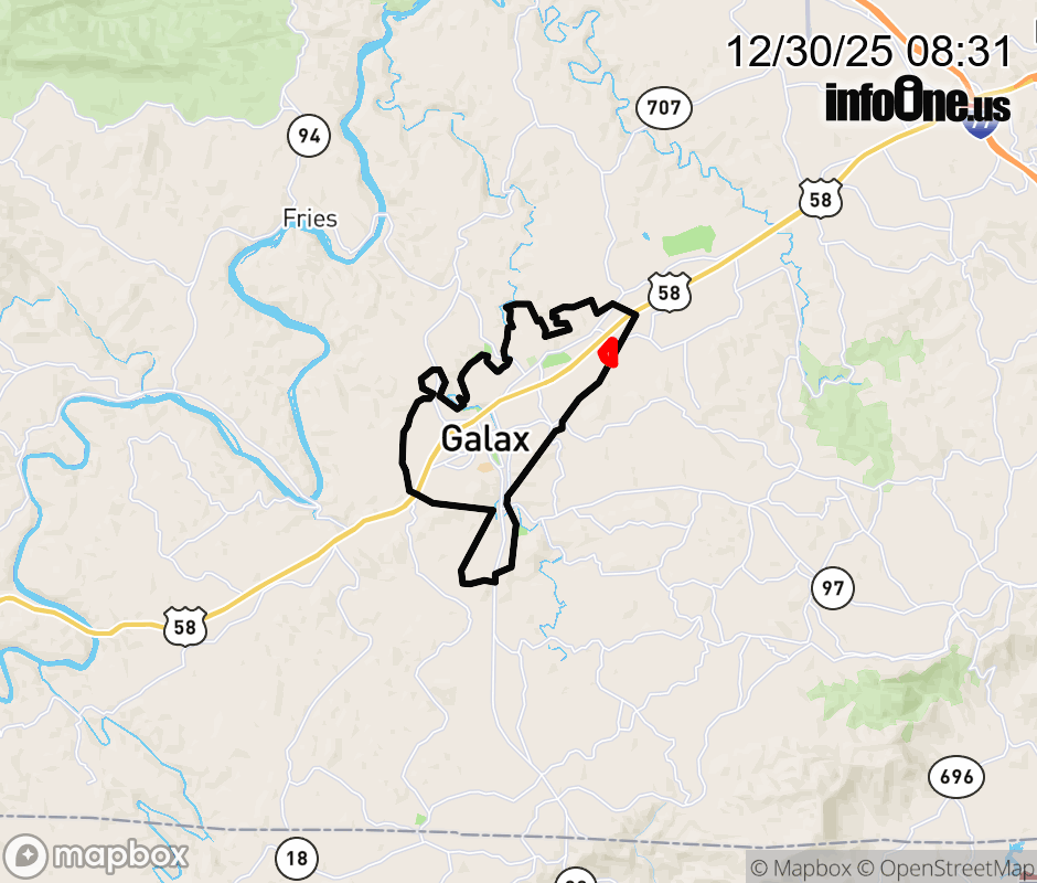Canceled 12/30/25 9:11 AM Galax has 1 power outage affecting 50 customers. Appalachian Power 50 without power Galax: Customers affected: 57 (1%) Estimated repair: Tue 3:00 PM Updated: Tue 12/30/25 8:31 AM EST ![]() Updated: Tue 12/30/25 8:31 AM EST |