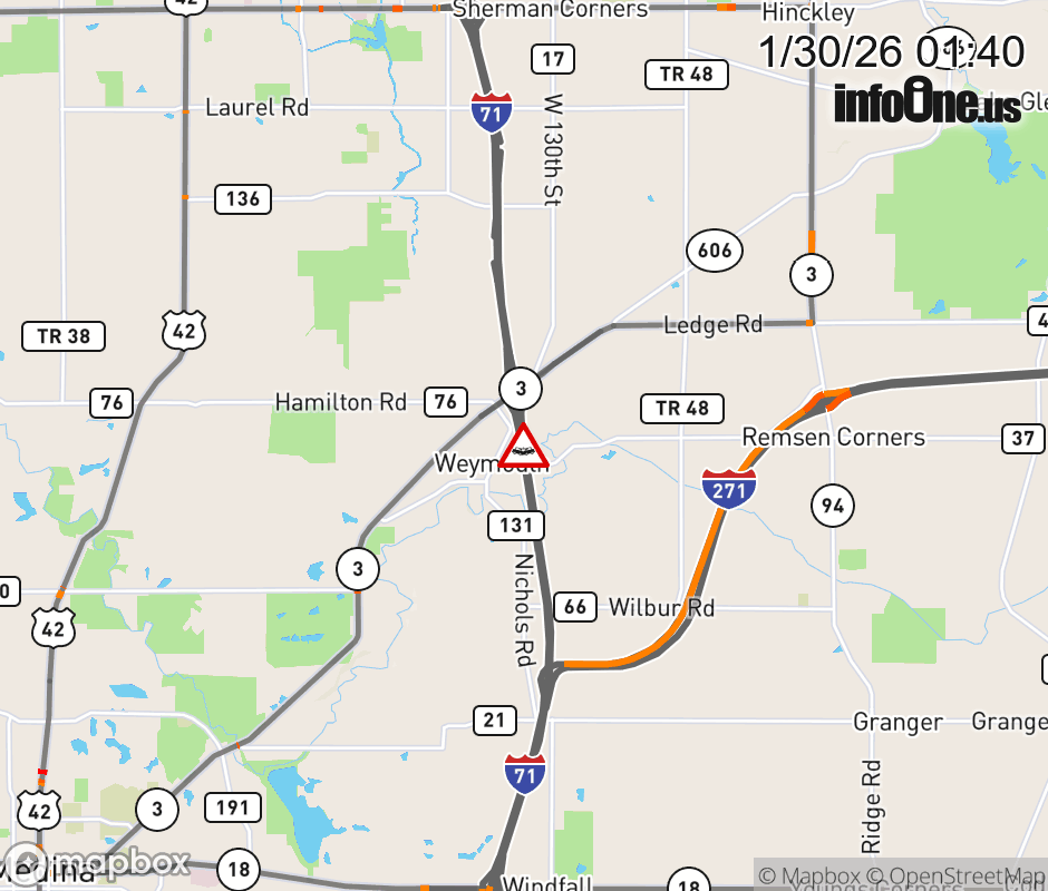The left lane is blocked on I-71 North at SR-3, due to a crash. ![]() |