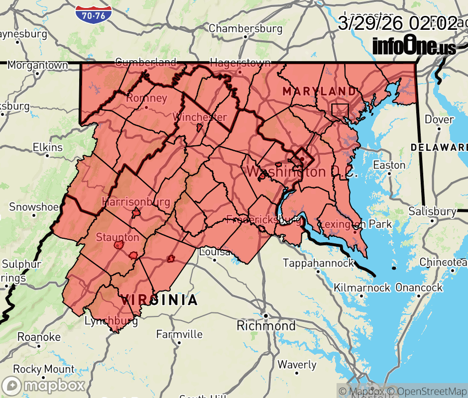 Canceled 3/29/26 8:00 PM Special Weather Statement issued March 29 at 2:01AM EDT by NWS Baltimore MD/Washington DC The combination of drying fine fuels, relative humidities around 20 to 30 percent, and wind gusts around 20 to 25 mph will lead to an increased risk for the rapid spread of wildfires today. Following modest early morning relative humidity recovery, the conditions most conducive to fire spread are expected from late morning through early evening (roughly 10 AM to 8 PM EDT). Residents and visitors are urged to properly dispose of cigarette butts, matches, and any other flammable items in appropriate containers. Additionally, exercise caution if operating any equipment that could create sparks and keep vehicles off of dry grass. Most dry grasses, dead leaves, and other tree litter could easily ignite and spread fire quickly. Lastly, remember to obey local burn bans. For more information about wildfire danger, burn restrictions, and wildfire prevention and education, please visit your state forestry or environmental protection website. For West Virginia, visit www.wvforestry.com For Maryland, visit dnr.maryland.gov For Virginia, visit dof.virginia.gov ![]() |