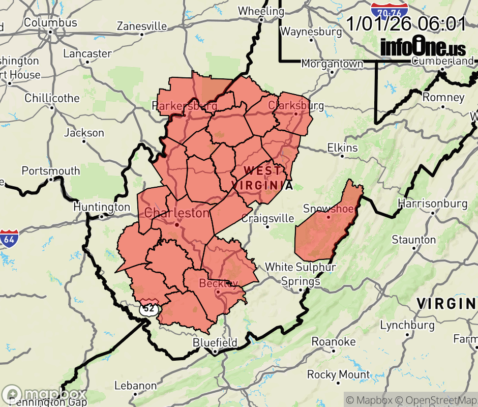Canceled 1/1/26 9:50 AM Winter Weather Advisory issued January 1 at 6:00AM EST until January 1 at 10:00AM EST by NWS Charleston WV * WHAT... Snow. Additional snow accumulations up to one inch. * WHERE... Portions of southeast Ohio and central, northeast, northern, southeast, and southern West Virginia. * WHEN... Until 10 AM EST this morning. * IMPACTS... Roads, and especially bridges and overpasses, are becoming slick and hazardous due to snowfall and temperatures plunging below freezing. Plan on slippery road conditions. ![]() |