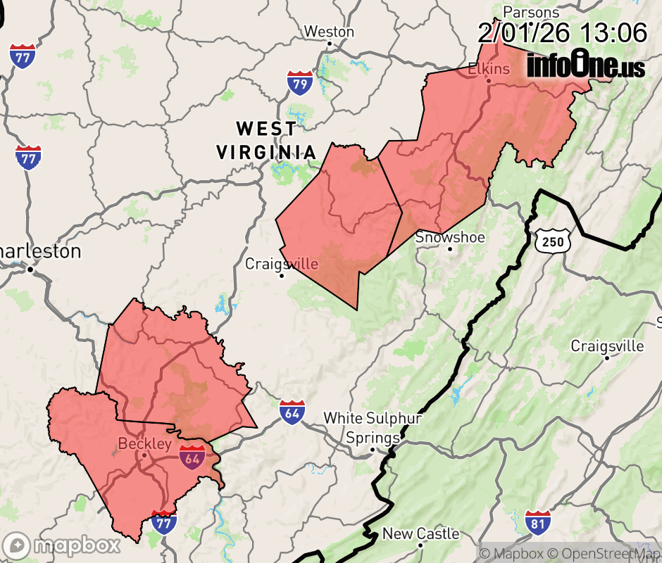 Canceled 2/1/26 9:06 PM Cold Weather Advisory issued February 1 at 1:05PM EST until February 2 at 11:00AM EST by NWS Charleston WV * WHAT... Very cold wind chills as low as 8 below. * WHERE... Northwest Randolph, Northwest Webster, Southeast Fayette, and Southeast Raleigh Counties. * WHEN... Until 11 AM EST Monday. * IMPACTS... The cold wind chills as low as 10 below zero could result in hypothermia if precautions are not taken. Frostbite will occur if unprotected skin is exposed to these temperatures. ![]() |