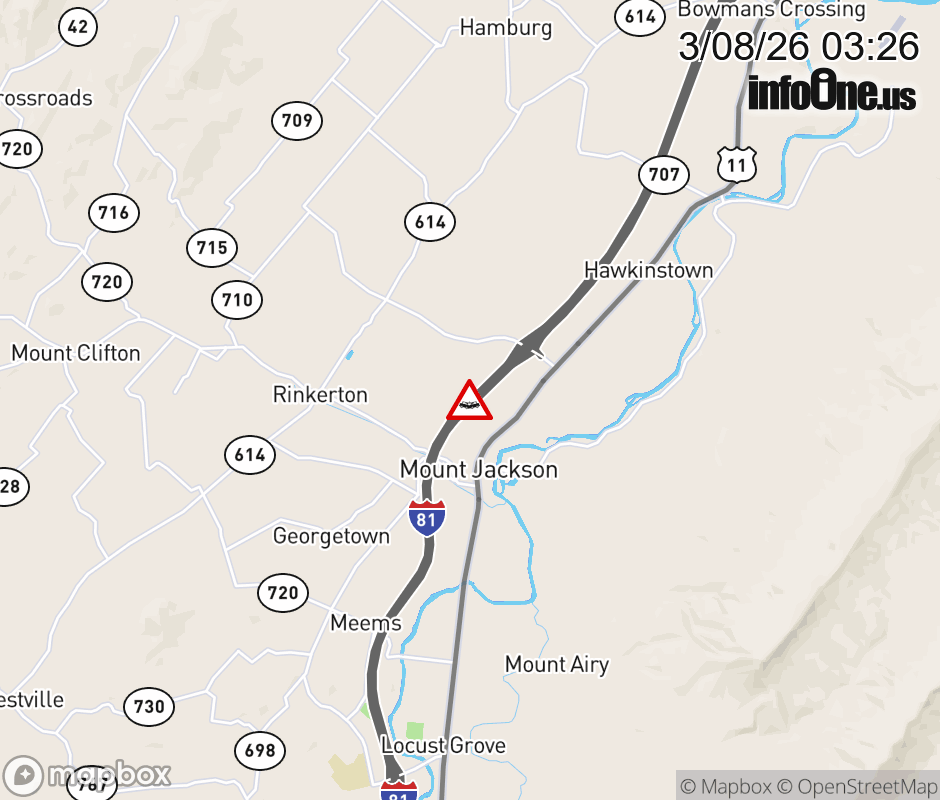 On I-81 South at mile marker 272.8 in the County of Shenandoah, motorists can expect delays due to a vehicle crash. Updated: Sun 3/8/26 3:26 AM EDT ![]() Updated: Sun 3/8/26 3:26 AM EDT |