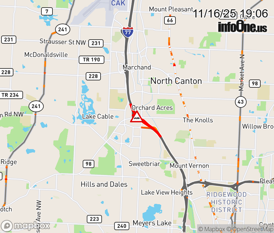 The 2 left lanes are closed on I-77 South beyond Everhard Rd/Whipple Ave, due to a disabled vehicle. Updated: Sun 11/16/25 7:06 PM EST ![]() Updated: Sun 11/16/25 7:06 PM EST |