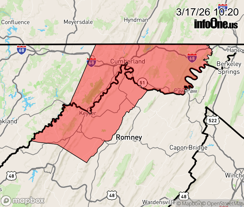 Canceled 3/17/26 4:54 PM Winter Weather Advisory issued March 17 at 10:19AM EDT until March 17 at 5:00PM EDT by NWS Baltimore MD/Washington DC * WHAT... Snow. Additional snow accumulations of 1 to 3 inches. Winds gusting as high as 35 mph. * WHERE... In Maryland, Extreme Western Allegany County. In West Virginia, Western Mineral County. * WHEN... Until 5 PM EDT this afternoon. * IMPACTS... Plan on slippery road conditions. The hazardous conditions could impact the Tuesday evening commute. * ADDITIONAL DETAILS... Some snow squalls may track across the Alleghenies today, especially during the afternoon hours. Any such squall could lead to a rapid drop in visibilities and come with snowfall rates of one to one and a half inches per hour. ![]() |