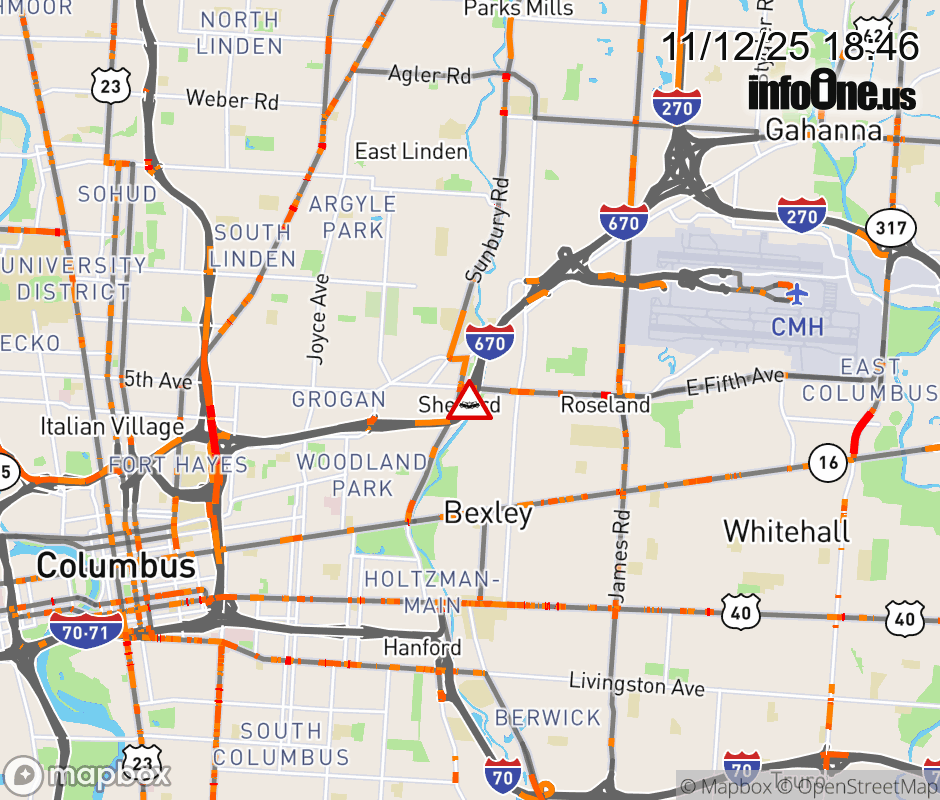 Canceled 11/12/25 7:30 PM Location: I-670 West W, OH Accident.