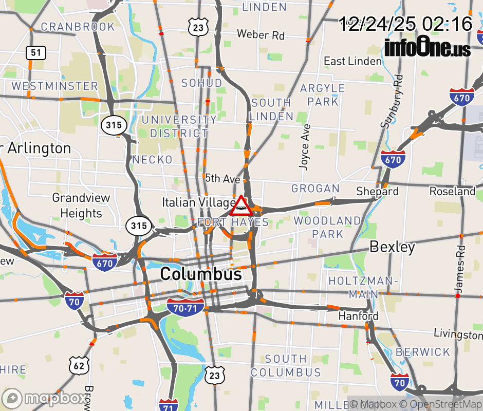 The right lane is closed on Ramp I-71 South to I-670 West, due to a crash. Updated: Wed 12/24/25 2:16 AM EST ![]() Updated: Wed 12/24/25 2:16 AM EST |