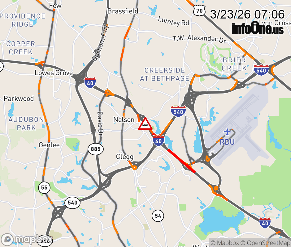 The left shoulder is closed before Exit 282 (Page Rd). Updated: Mon 3/23/26 7:06 AM EDT ![]() Updated: Mon 3/23/26 7:06 AM EDT |