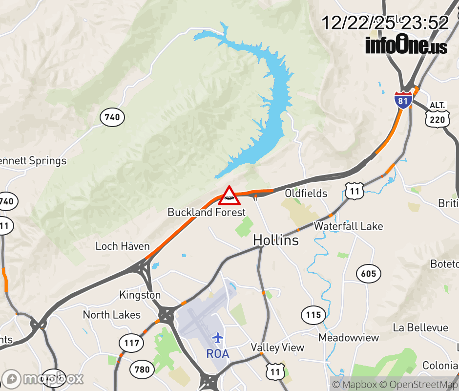 On I-81 at mile marker 146 in the County of Roanoke, motorists can expect delays due to a tractor trailer crash. The north right lane and right shoulder are closed. Updated: Mon 12/22/25 11:52 PM EST ![]() Updated: Mon 12/22/25 11:52 PM EST |
