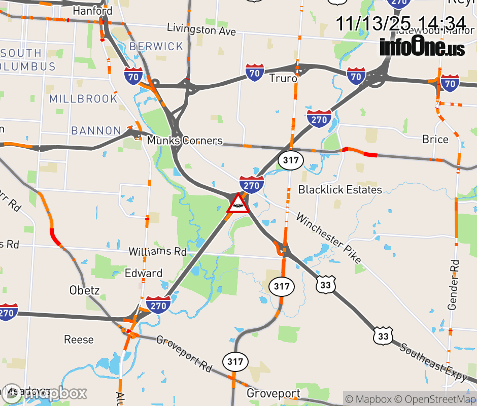 Expect lane closures on I-270 North beyond US-33, due to a crash. ![]() |
