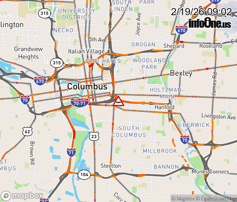 The left lane is blocked on Ramp I-71 South to I-70 East, due to a crash. ![]() |