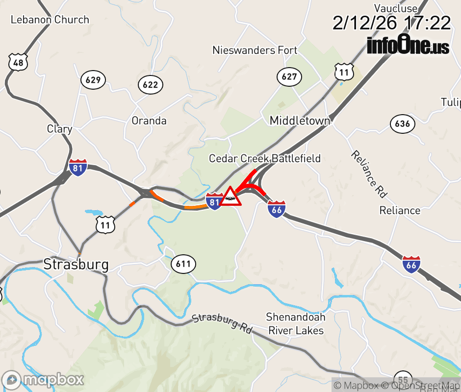 On I-81 South at mile marker 300 in the County of Warren, motorists can expect delays due to a vehicle crash. Traffic backups are approximately 2.0 miles. Updated: Thu 2/12/26 5:22 PM EST ![]() Updated: Thu 2/12/26 5:22 PM EST |