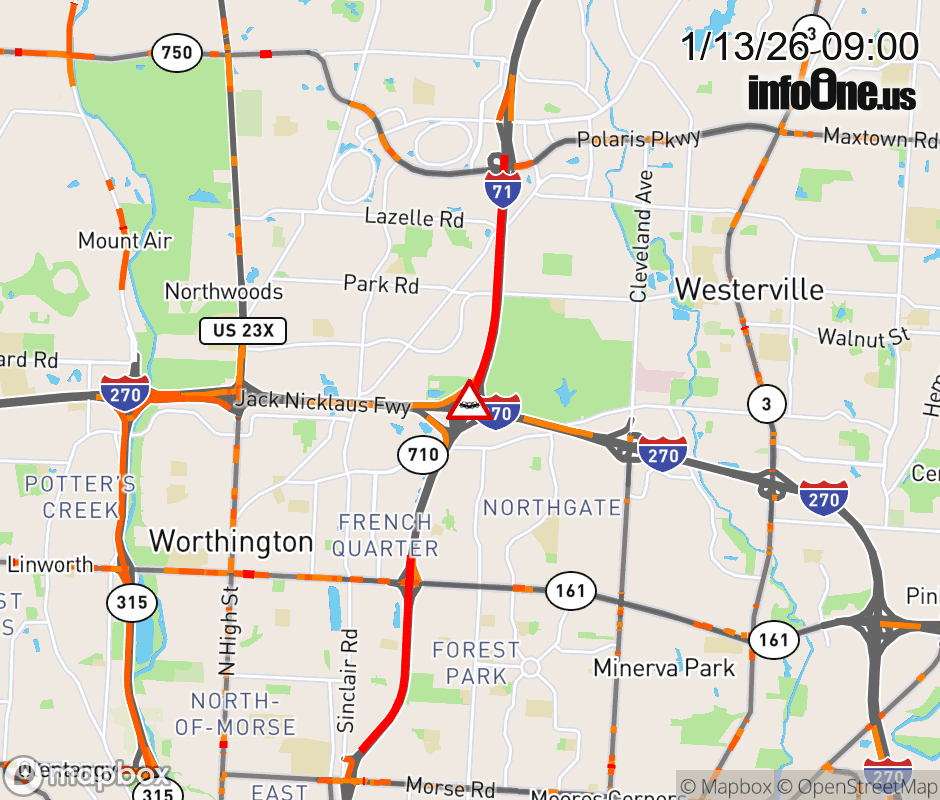 The right shoulder is blocked on I-71 South at I-270 East (North Side), due to a crash. Updated: Tue 1/13/26 9:00 AM EST ![]() Updated: Tue 1/13/26 9:00 AM EST |