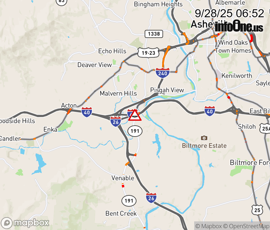 The right lane is closed near Exit 47 (NC 191). ![]() |