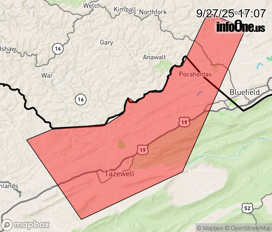Canceled 9/27/25 8:15 PM Flood Advisory issued September 27 at 5:05PM EDT until September 27 at 8:15PM EDT by NWS Blacksburg VA * WHAT... Flooding caused by excessive rainfall is expected. * WHERE... Portions of southwest Virginia, including the following county, Tazewell and southeast West Virginia, including the following county, Mercer. * WHEN... Until 815 PM EDT. * IMPACTS... Minor flooding in low-lying and poor drainage areas. * ADDITIONAL DETAILS... - At 505 PM EDT, Doppler radar indicated heavy rain due to thunderstorms. Minor flooding is ongoing or expected to begin shortly in the advisory area. Between 1 and 2 inches of rain have fallen. - This includes the following streams and drainages... Clinch River, Bluestone River, Crane Creek, Beech Fork and Burkes Garden Creek. Additional rainfall amounts up to 1 inch are expected over the area. This additional rain will result in minor flooding. - Some locations that will experience flooding include... Bluefield... Tazewell... Pocahontas... Bramwell... Tiptop... Gratton... Boissevain... - http://www.weather.gov/safety/flood ![]() |