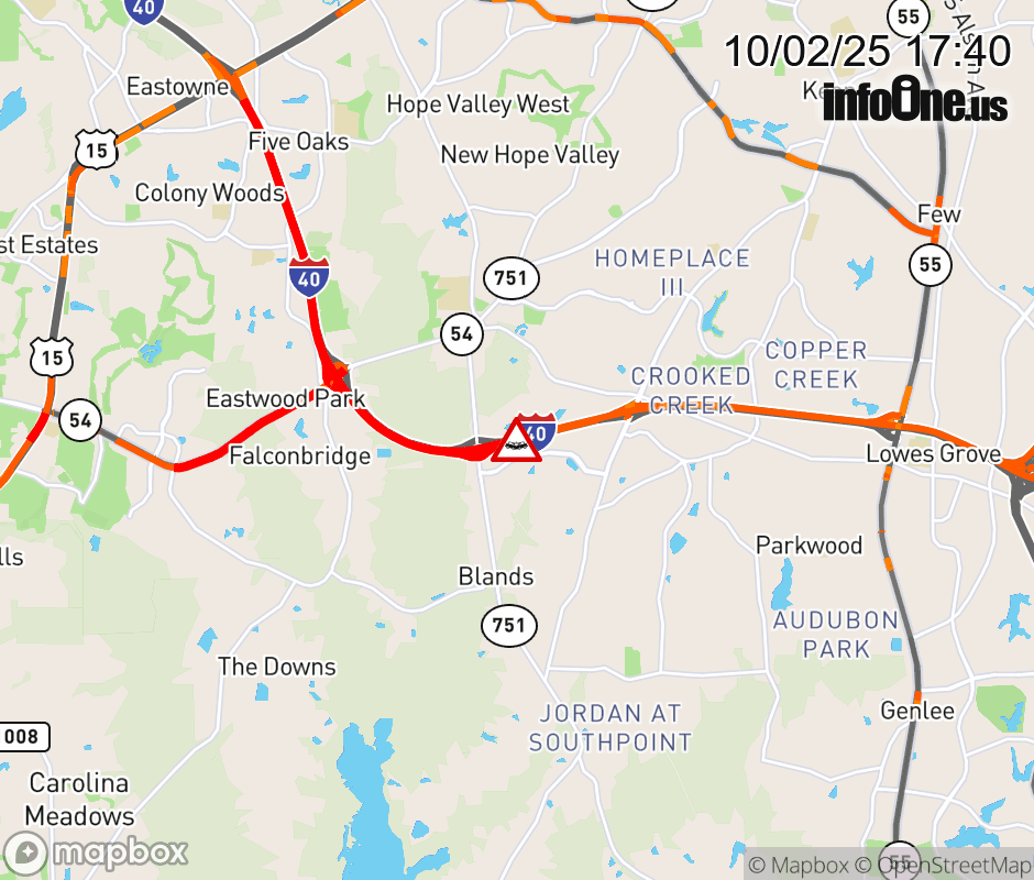The right shoulder is closed past Exit 274 (NC 751). Updated: Thu 10/2/25 5:40 PM EDT ![]() Updated: Thu 10/2/25 5:40 PM EDT |