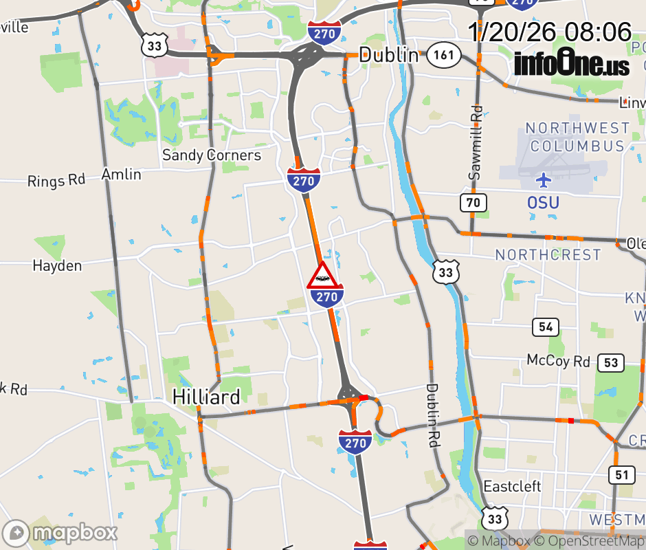 The right lane is blocked on I-270 North beyond Cemetery Rd, due to a crash. Updated: Tue 1/20/26 8:06 AM EST ![]() Updated: Tue 1/20/26 8:06 AM EST |