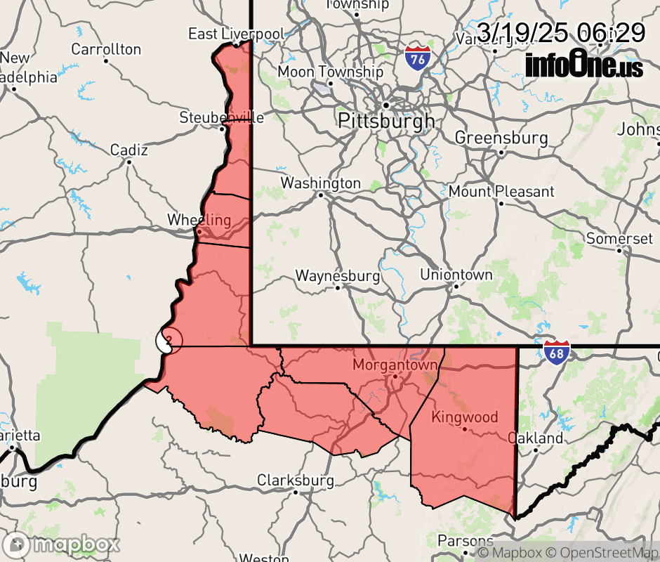 Canceled 3/19/25 10:00 PM Red Flag Warning issued March 19 at 6:28AM EDT until March 19 at 10:00PM EDT by NWS Pittsburgh PA ...Low humidity, above normal temperature, gusty wind and dry fuels will create an enhanced risk for wildfire ignition and spread today... The National Weather Service in Pittsburgh has issued a Red Flag Warning, which is in effect from 11 AM this morning to 10 PM EDT this evening. The Fire Weather Watch is no longer in effect. * AFFECTED AREA... Hancock, Brooke, Ohio, Marshall, Wetzel, Marion, Monongalia, Ridges of Eastern Monongalia and Northwestern Preston and Preston counties. * TIMING... Late Wednesday morning into Wednesday evening. * WINDS... South 10 to 20 mph with gusts up to 35 mph. * RELATIVE HUMIDITY... As low as 12 percent. * TEMPERATURES... Up to 82. * LIGHTNING... None. * IMPACTS... The combination of dry conditions, low humidity, and gusty winds may result in favorable conditions for the rapid spread of fires. ![]() |