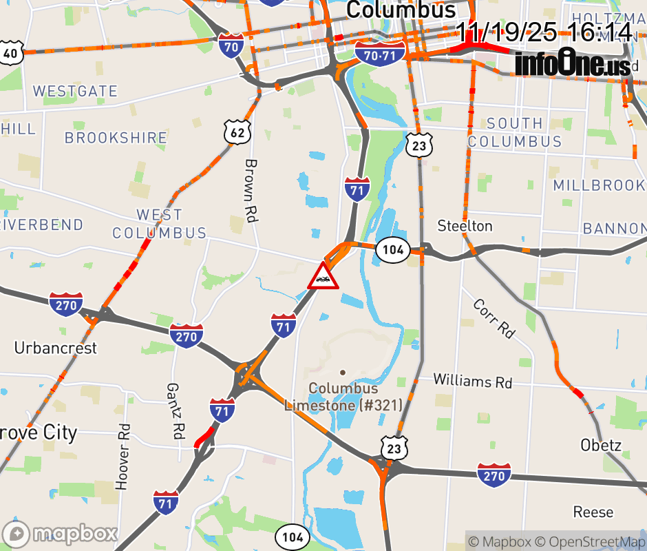 The left shoulder is blocked on I-71 South beyond SR-104/Frank Rd, due to a disabled vehicle. Updated: Wed 11/19/25 4:14 PM EST ![]() |