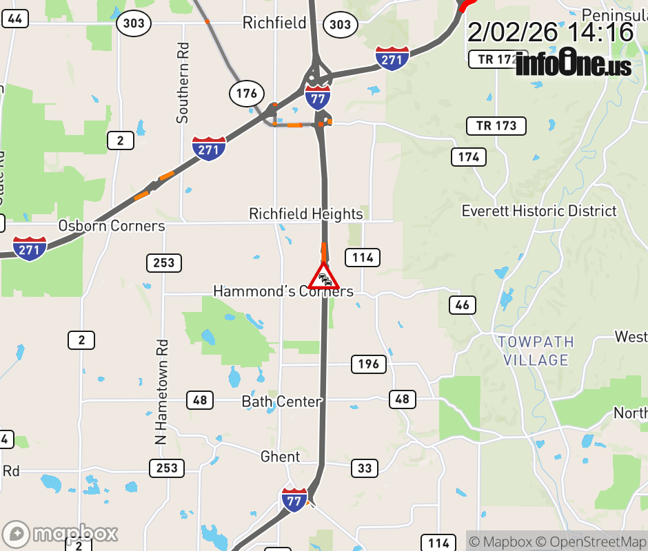 The right lane is blocked on I-77 South beyond Summit County Rest Area 4-32, due to a police incident. ![]() |