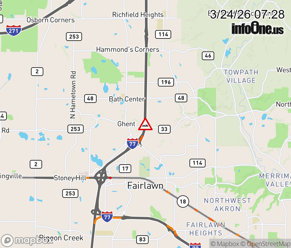 The right lane is blocked on I-77 North beyond Ghent Rd, due to a disabled vehicle. ![]() |