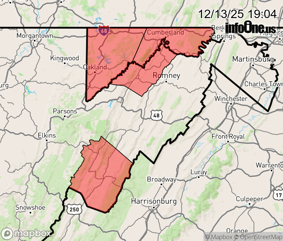 Canceled 12/14/25 2:11 AM Winter Weather Advisory issued December 13 at 7:01PM EST until December 14 at 1:00PM EST by NWS Baltimore MD/Washington DC * WHAT... Snow expected. Total snow accumulations between 2 and 5 inches. Winds gusting as high as 35 mph. * WHERE... In Maryland, Eastern Garrett and Extreme Western Allegany Counties. In West Virginia, Western Mineral and Western Pendleton Counties. * WHEN... Until 1 PM EST Sunday. * IMPACTS... Plan on slippery road conditions. * ADDITIONAL DETAILS... The heaviest snow will likely fall between now and Midnight. Visibility may be reduced in snow and blowing snow to around a quarter to half of a mile at times. ![]() |