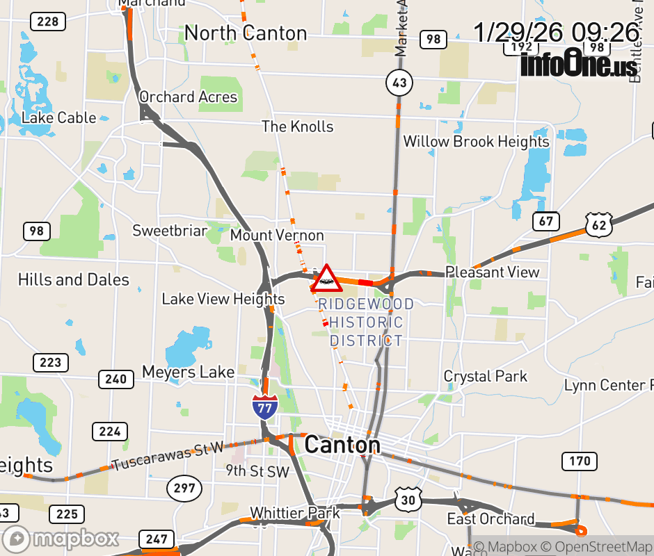 Expect lane closures on US-62 West at Cleveland Ave NW, due to a crash. ![]() |