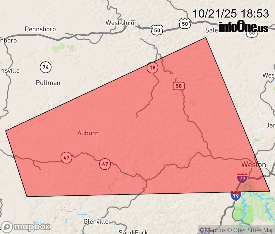 Canceled 10/21/25 7:15 PM Severe Thunderstorm Warning issued October 21 at 6:52PM EDT until October 21 at 7:30PM EDT by NWS Charleston WV SVRRLX The National Weather Service in Charleston West Virginia has issued a * Severe Thunderstorm Warning for... Southeastern Ritchie County in northwestern West Virginia... Southern Doddridge County in northern West Virginia... Northern Gilmer County in north central West Virginia... Northwestern Lewis County in northern West Virginia... Southwestern Harrison County in northern West Virginia... * Until 730 PM EDT. * At 651 PM EDT, a severe thunderstorm was located 9 miles north of Glenville, moving east at 40 mph. HAZARD...60 mph wind gusts and quarter size hail. SOURCE...Radar indicated. IMPACT...Hail damage to vehicles is expected. Expect wind damage to roofs, siding, and trees. * Locations impacted include... Weston, Stonewall Jackson, Auburn, Camden, Avon, Grove, Leopold, Troy, Newberne, New Milton, Alum Bridge, Coxs Mills, Linn, Berea, Tanner, and Burnt House. This includes Interstate 79 between mile markers 93 and 97. ![]() |