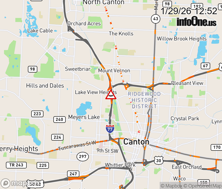 The 2 left lanes are blocked on I-77 South at US-62 East, due to a crash. Updated: Thu 1/29/26 12:52 PM EST ![]() Updated: Thu 1/29/26 12:52 PM EST |