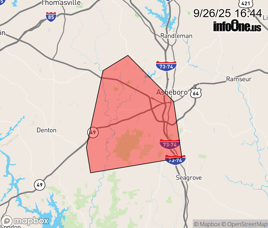 Canceled 9/26/25 4:52 PM Severe Thunderstorm Warning issued September 26 at 4:43PM EDT until September 26 at 5:00PM EDT by NWS Raleigh NC At 442 PM EDT, a severe thunderstorm was located 10 miles southwest of Asheboro, moving northeast at 20 mph. HAZARD...60 mph wind gusts and penny size hail. SOURCE...Radar indicated. IMPACT...Expect damage to roofs, siding, and trees. Locations impacted include... Asheboro, Ulah, and Martha. ![]() |