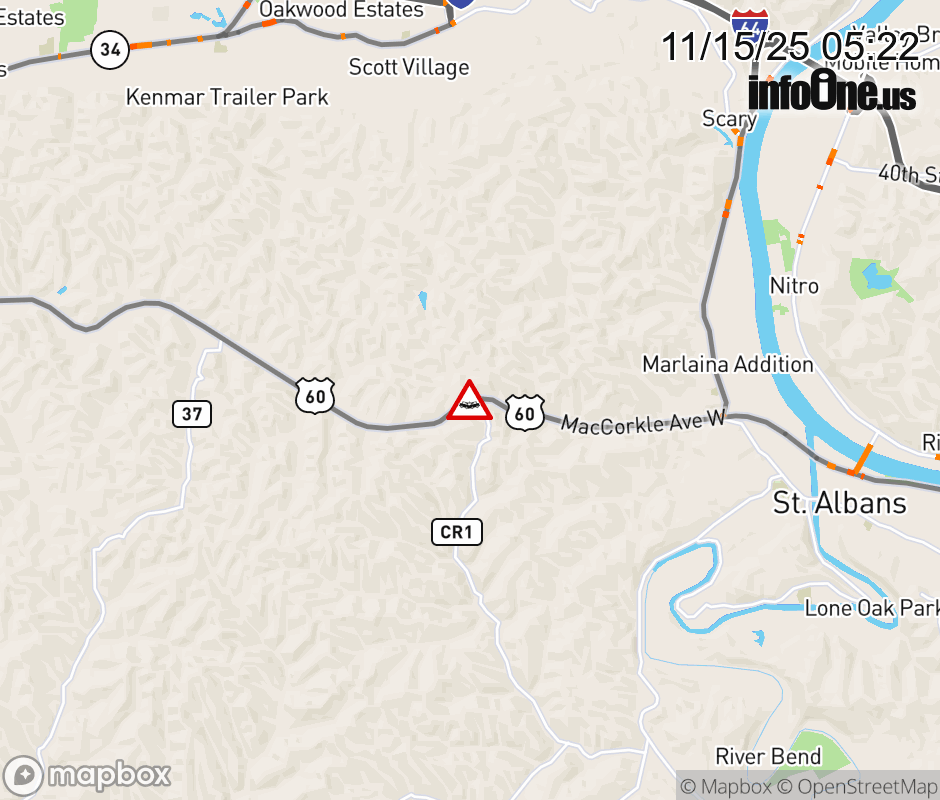 Canceled 11/15/25 6:26 AM Location: US-60 at MM 0.0, WV Accident.